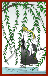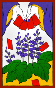 花札で人間たちの運命を弄び、選択と結末を意図的に狂わせている累伽。人が渇愛に溺れ、崩れていく姿を見つめながら、「愛は苦でしかない」という結論を何度も確かめている。これは、自らの過去と弱さから目を背けるためであり、その矛盾を覆い隠すように、神という立場にすがり続けている。